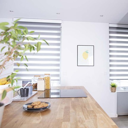 Med Somfy-motorisering blir duo-rullegardinene dine enda smartere. Styr dem med fjernkontroll, smarttelefon eller still inn automatiske scenarier med TaHoma switch. Slik tilpasses interiøret etter ditt daglige behov og rytme.