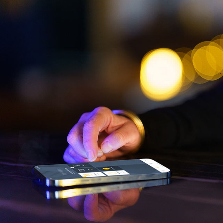 Fra smarttelefonen kan du justere lyden, lukke gardinene og dempe belysningen.