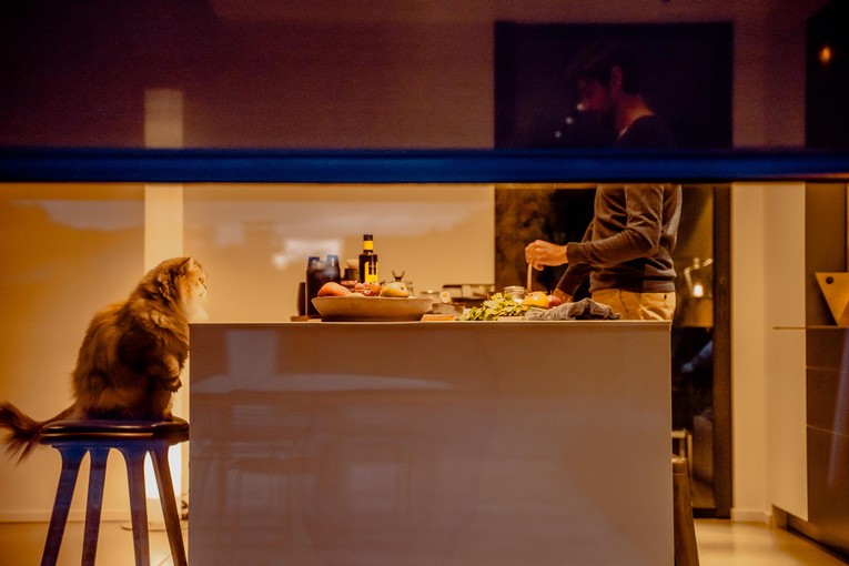 Sol- og temperatursensorer, kombinert med styring via Somfy TaHoma switch, sørger for at alt skjer automatisk.